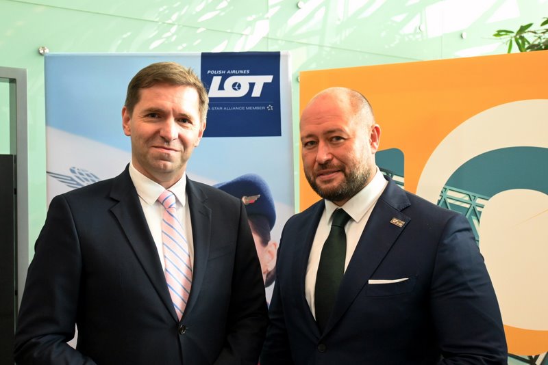 Michał Fijoł, prezes zarządu PLL LOT oraz Prezes zarządu Kraków Airport, Łukasz Strutyński