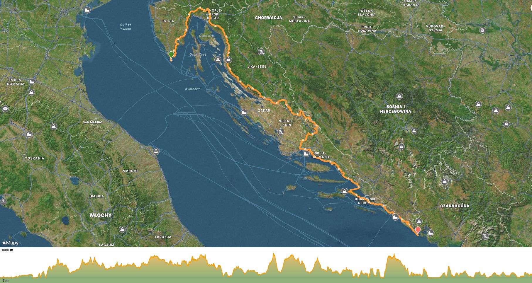 Pierwsze polskie przejście szlaku Via Adriatica, solo, bez wsparcia z zewnatrz i supportów. Po wyruszeniu 1 maja z Puli a następnie z przylądka Kamenjak i po pokonaniu 1 237 km i 1 673 000 kroków, w niedzielę 6 lipca 2025r w samo południe dotarłem na skraj przylądka Prevlaka. Całość zajęła mi 67 dni. Przejście wyłącznie pieszo, z całym niezbędnym sprzętem i prowiantem w plecaku. Pożary, ulewy, burze i upały, to coś co towarzyszyło mi każdego dnia, niosąc na plecach bagaż ważący od 18 do nawet 25 kg, w zależności od danego odcinka i potrzebnego prowiantu i wody.