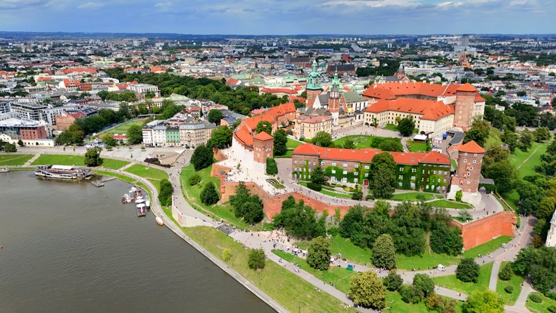 - Wzgórze Wawelskie – symboliczny punkt miasta i dawna siedziba królewska.