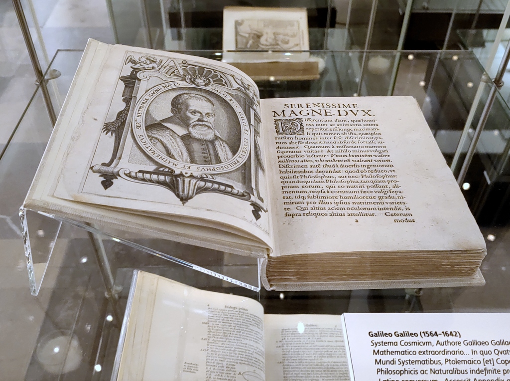 Pierwsze wydanie dzieła Galileusza, w którym autor porównuje teorię geocentryczną Ptolemeusza z teorią heliocentryczną Kopernika, opowiadając się za tą drugą. Tekst przyjmuje formę dialogu, nawiązując tym samym do wzorców antycznych.