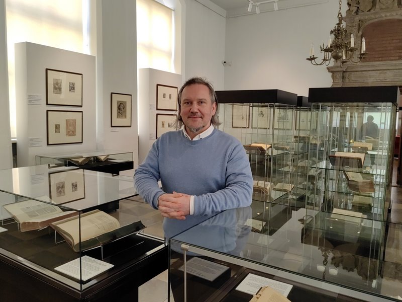 Wystawa ma dosyć długi tytuł "Ze wszech ksiąg najbardziej godna przeczytania… Wokół De revolutionibus Mikołaja Kopernika" ale myśleliśmy też o nieco innym tytule, odnoszącym się do książki Owena Gingericha* "Książka której nikt nie przeczytał", amerykańskiego badacza który całe życie oddał De revolutionibus bo zjeździł cały świat a przede wszystkim najważniejsze biblioteki europejskie, poszukując pierwszych wydań De revolutionibus. Później szukał drugich wydań a także trzecich i naliczył ich około 280 egzemplarzy ksiąg wydanych i zachowanych a mówimy o pierwszym wydaniu, czyli Norymberga 1543 rok. Nakład wówczas tej książki wynosił 500 egzemplarzy. Można więc powiedzieć że ponad połowa nakładu się zachowała, co jest bardzo dobrym wynikiem. Ten tytuł "Książka której nikt nie przeczytał" nawiązywał do innej frazy - refleksji Kestlera, który był dosyć popularnym intelektualistą lat 60-tych w których napisał książkę "Lunatycy" i tam dosyć mocno bronił tezy że "De revolutionibus" było książką której nikt nie czytał, że została opublikowana ale nie zyskała odzewu w środowisku naukowym czy też w szerszym odbiorze społecznym. Działalność Gingericha przeczyła temu bardzo mocno z tego względu, że on na większości tych 280 egzemplarzy odkrywał notatki wielu ich właścicieli. Dzisiaj także lubimy sobie coś zapisywać na stronach książek. To miało bardzo duże znaczenie historyczne bo pozostał ślad o użytkowaniu tej książki i myśli które są zapisywane. Większość z tych książek była w ten sposób komentowana a więc teza że jest to książka której nikt nie czytał, została obalona, właśnie choćby przez ilość tych notatek.