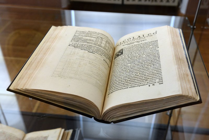 Galileo Galileo (1564-1642) Wydanie Dialogu sopra i due massimi sistemi del mondo pochodzące z początku XVIII w. z nieznanej drukarni. Fikcyjny adres wydawniczy: w rzeczywistości książkę tę wydano w Neapolu, a nie we Francji, jak zostało to podane na karcie tytułowej.