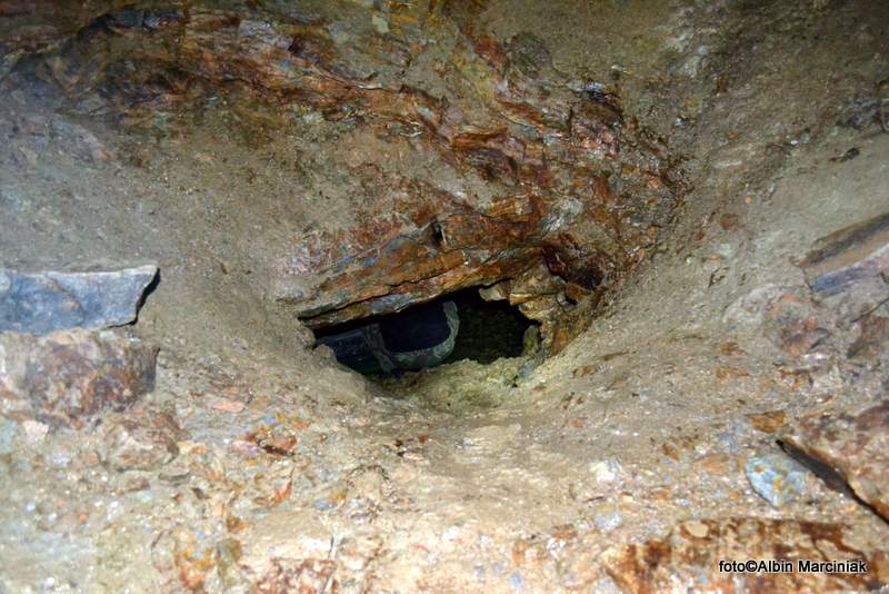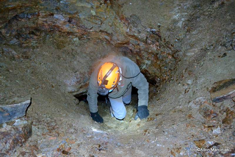 Mijamy kolejny zawał. Wiele wskazuje że może to być przejście do nieznanych części podziemi. Spore bloki skalne, lejąca się woda i osuwisko. Bardzo utrudnione i niebezpieczne było by kopanie w tym miejscu