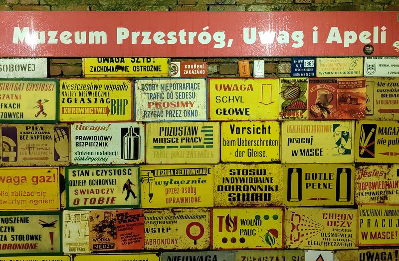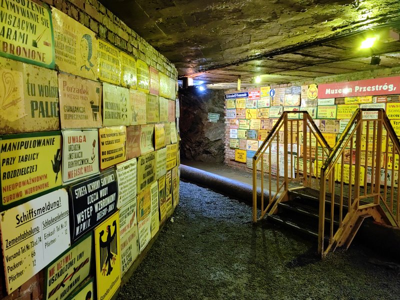 Kolekcja tablic ostrzegawczych i informacyjnych, związanych głównie z przepisami BHP uwieczniających najróżniejsze hasła, instrukcje i ostrzeżenia. Często są to hasła wręcz zabawne, typu: „Nie rzucaj młotkiem, będąc na rusztowaniu” lub bardziej ambitne „Co zrobiłeś dzisiaj dla obniżenia kosztów własnych?”. Nie brakuje tablic z tekstami wręcz kultowymi, jak np "Walim na żądanie" a jest to tabliczka z przystanku PKS na żądanie w Walimiu. Zwiedzając kopalnię z przewodnikiem, nie sposób wczytać się we wszystkie tablice, stąd dla ułatwienia poniższa galeria najciekawszych z nich.