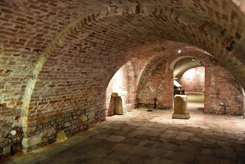 W jednej z krypt zachowały się fragmenty murów średniowiecznego kościoła, odkryte podczas prac archeologicznych w latach 60. XX wieku. Patrząc na nie, można niemal zobaczyć, jak przez stulecia świątynia rosła i zmieniała się wraz z miastem.
