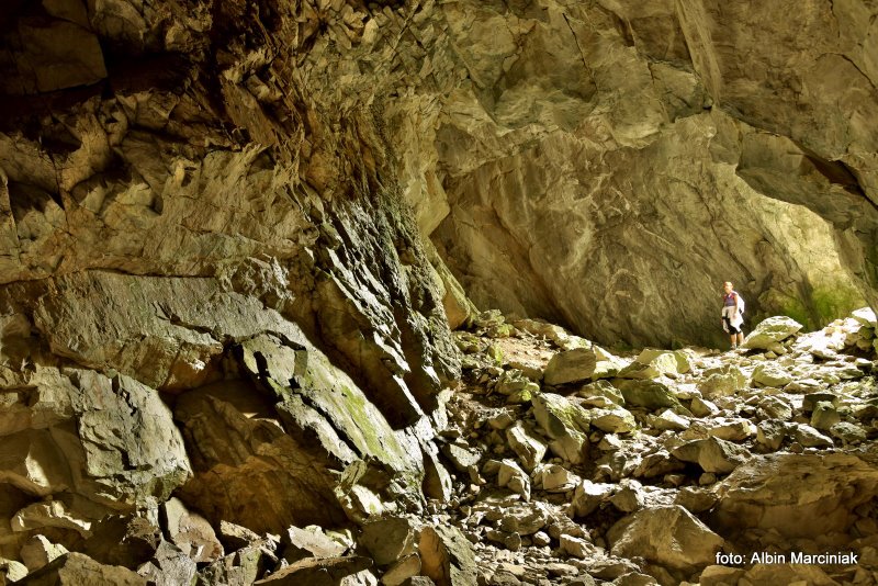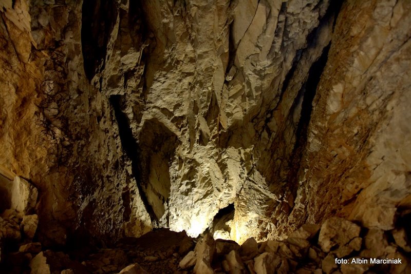 Główny wejściowy otwór ma średnicę ok. 3 m. Prowadzi od niego zejście pionowym 4-metrowym progiem po stalowej drabinie do głównej komory. Jest to to pojedyncza, duża sala o wysokości 10-15 m i rozmiarach 10 × 40 m. W jej stropie znajdują się otwory dwóch małych studzienek. Od sali prowadzi kilka bocznych, zakończonych ślepo korytarzy. Po lewej stronie od wejścia 20 metrowy, opadający w dół korytarz prowadzi do ciasnej szczeliny, którą można się przecisnąć do następnej mniejszej sali, a z niej z kolei do innego szerszego korytarza, w którym znajduje się mała kapliczka.