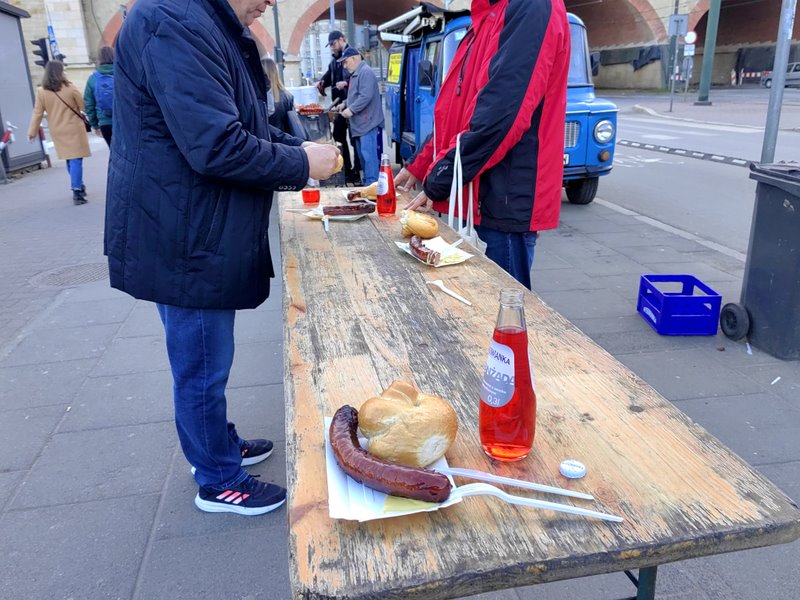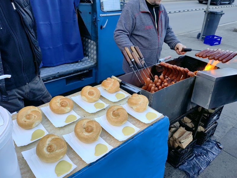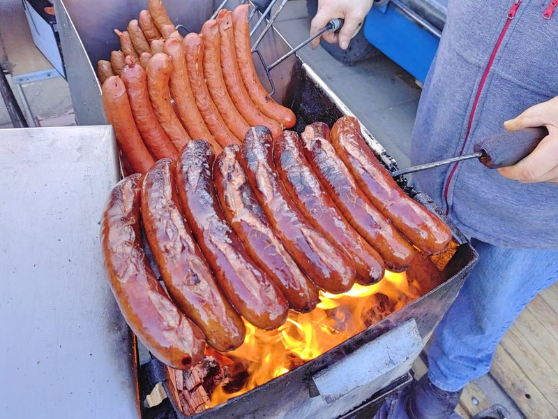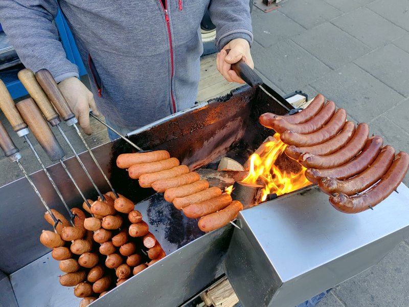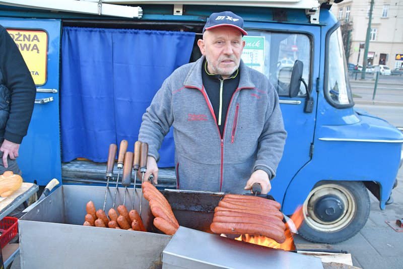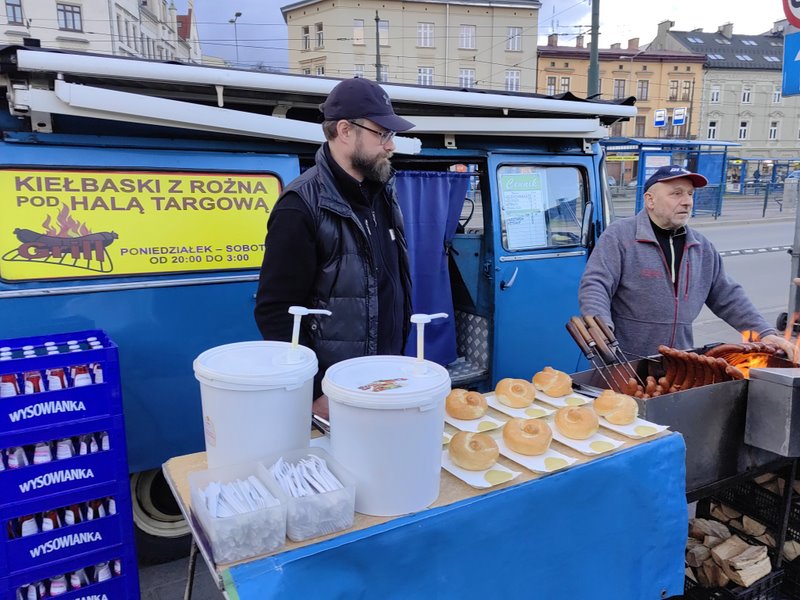 Legendarne krakowskie kiełbaski z niebieskiej nyski spod Hali Targowej