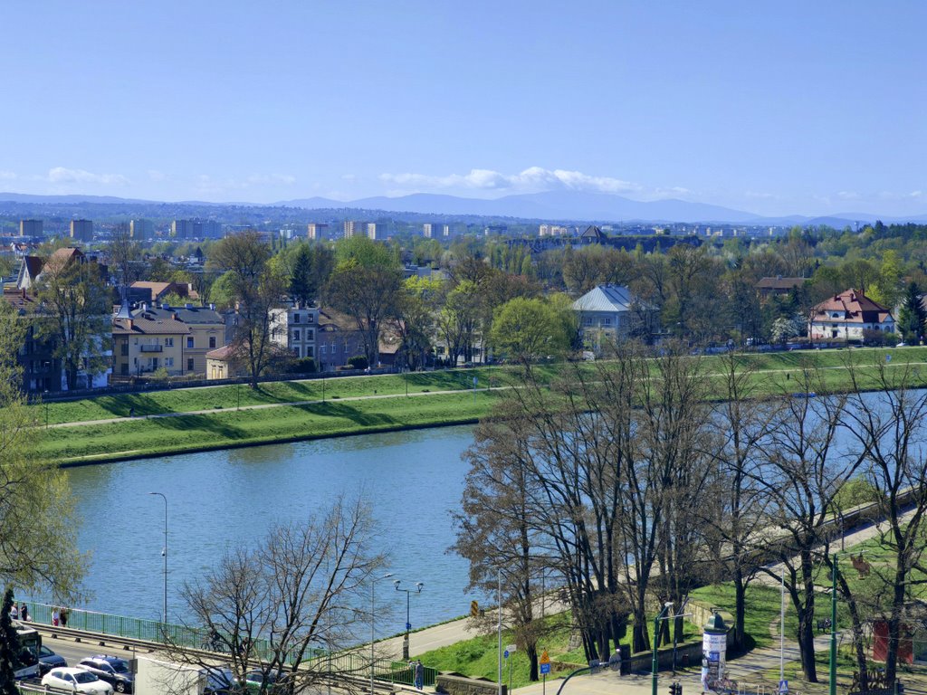 W pogodny dzień widok sięga znacznie dalej – aż po horyzont, gdzie majaczą zarysy Tatr, a na prawo rozciąga się masyw Babiej Góry. To niesamowite, że będąc w samym centrum miasta, można poczuć się jak na górskim szlaku, patrząc na przestrzeń, która uspokaja i inspiruje.