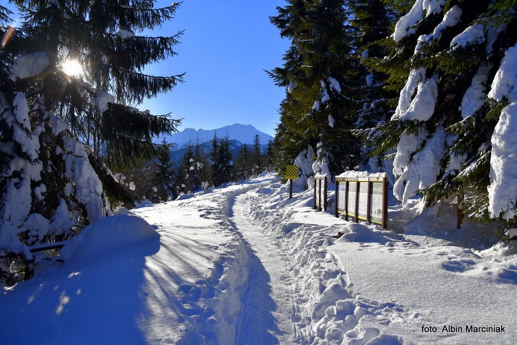 Początek szlaku Wierch Porońca w kierunku Rusinowej Polany (zima).