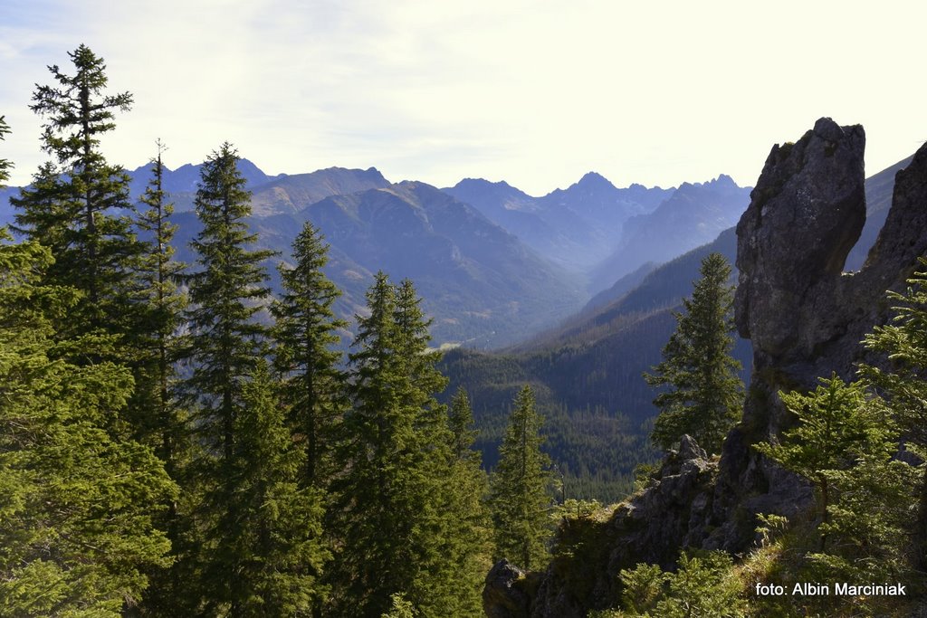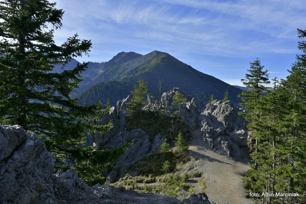 Szlak z Rusinowej Polany na Gęsią Szyję. Widoczne Tatry Bielskie na Słowacji.