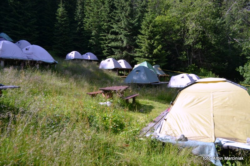 Noclegi w bazie namiotowej dla wszystkich wspinaczy i taterników jaskiniowych na obozowiskach taternickich na polanach: Szałasiska i Rogoźniczańskiej. Korzystać z nich mogą wyłącznie osoby zrzeszone w PZA, w federacjach należących do UIAA oraz wspinacze niezrzeszeni. Obozowiska przeznaczone są wyłącznie dla osób pełnoletnich. Na teren TPN oraz na obozowiskach obowiązuje całkowity zakaz wprowadzania zwierząt (psy, koty itp).