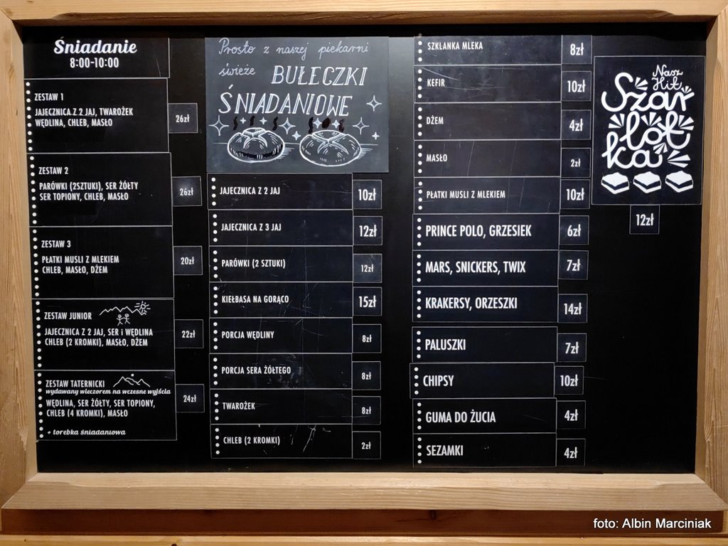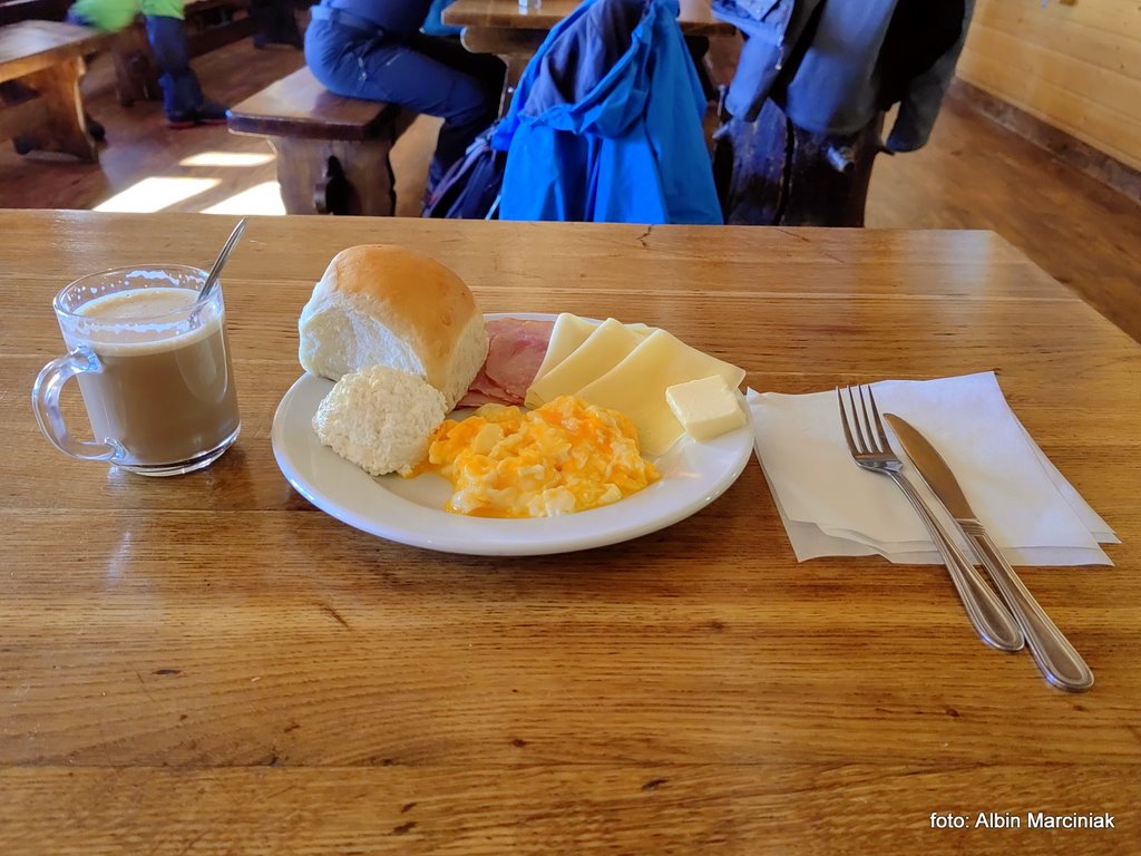 Oczywiści e nie samym ciastem człowiek żyje. Pozostałe dania także są tutaj smaczne a porcje duże. Mimo że jest to jedyne schronisko w Tatrach gdzie nie można dojechać a cały transport jest mocno ograniczony, to jednak ceny są w większości niższe niż w centrum Zakopanego. Nie zawiodą się także osoby zamawiające zestawy śniadaniowe, bo poza wyjątkowymi szarlotkami, od niedawna w kuchni stanął specjalny piec do wypieku bułeczek. Po takim śniadaniu aż chce się wyruszać na górskie szlaki.