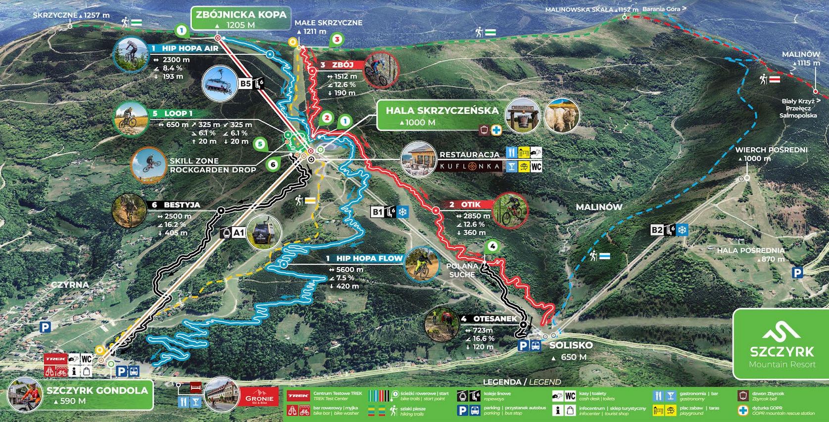 W Szczyrku jest także bike park Szczyrk Enduro Trails by TREK! Cały kompleks to 16 km zróżnicowanych tras enduro, od łagodnych niebieskich flow po mocne enduro na czarnych naturalnych takich jak Otik i Bestyja!