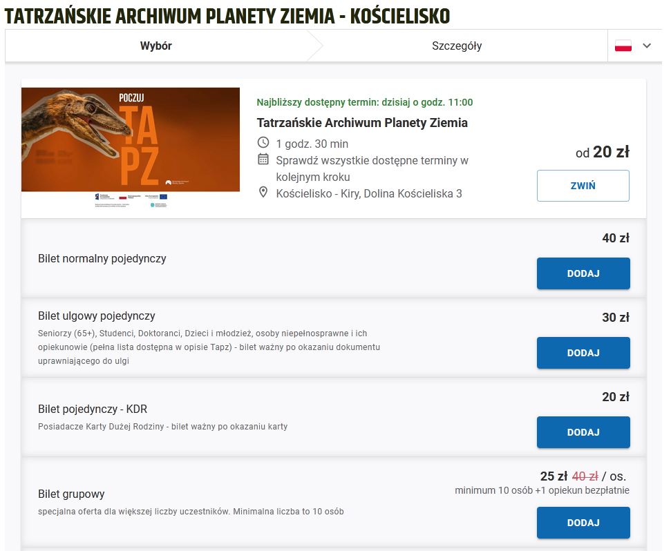 ceny biletów wstępu do Tatrzańskiego Archiwum Planety Ziemia