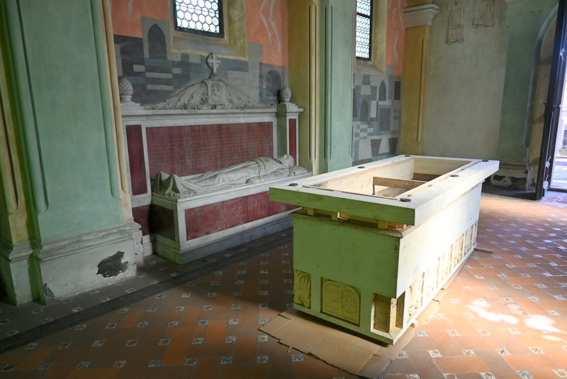 Wracamy do modelu wawelskiego sarkofagu Królowej Jadwigi. Madeyski miał otrzymać zamówienie na wykonanie sarkofagu Królowej Jadwigi w lipcu 1900 roku. Model musiał być gotowy w 1901 roku co potwierdza napis u wezgłowia modelu. Zbigniew Święch uważał, że już od połowy 1902 roku sarkofag był gotowy na przyjęcie szczątków Królowej w Katedrze na Wawelu. Angela Sołtys dodaje, że odsłonięcie miało miejsce w grudniu 1902 roku co potwierdzają dokumenty. Celowo przywołuję tarnowskich badaczy bowiem moim zdaniem w 1912 może 1913 roku Madeyski podarował czy sprzedał model Konstancji Sanguszkowej. Nie mam na to dowodów pomimo przejrzenia szerokiej korespondencji około 170 listów pomiędzy artystą i Konstancją z Zamoyskich Sanguszkową gdy Madeyskiego nie było w Tarnowie. Nie znalazłem też datowania tego faktu w żadnych dokumentach ani artykułach. Model zdaniem Witolda Gryla na co też nie mam potwierdzenia /bowiem zdobyłem zaledwie dwa zdjęcia z wnętrza Kaplicy pałacowej z okresu międzywojennego ale nie ma na nich modelu sarkofagu/ - początkowo zdobił wnętrze tej kaplicy. W 1944 roku kaplica została uszkodzona bowiem w jej pobliżu wybuchła radziecka bomba lotnicza. Atak był spowodowany tym, że w pobliżu znajdowała się niemiecka jednostka przeciwlotnicza. Wtedy też przeniesiono model do wnętrza pałacu. Pamiętajmy, że jest to model w skali 1 do 1czyli wysokość 1, 45133m, długość 2, 6276 m i szerokość 1,10104.