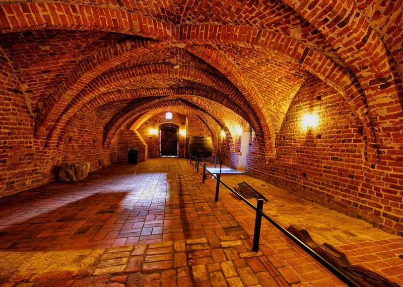 Największy zamek w Polsce oraz na świecie, poza komnatami i rozległym terenem zewnętrznym, ma także wiele do zaoferowania w swoich podziemiach. W piwnicach prezentowane są elementy oryginalnych konstrukcji z drewna, sklepień piwnic czy posadzek z początków istnienia zamku. Także tutaj prezentowane są wystawy czasowe.