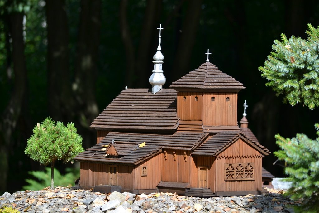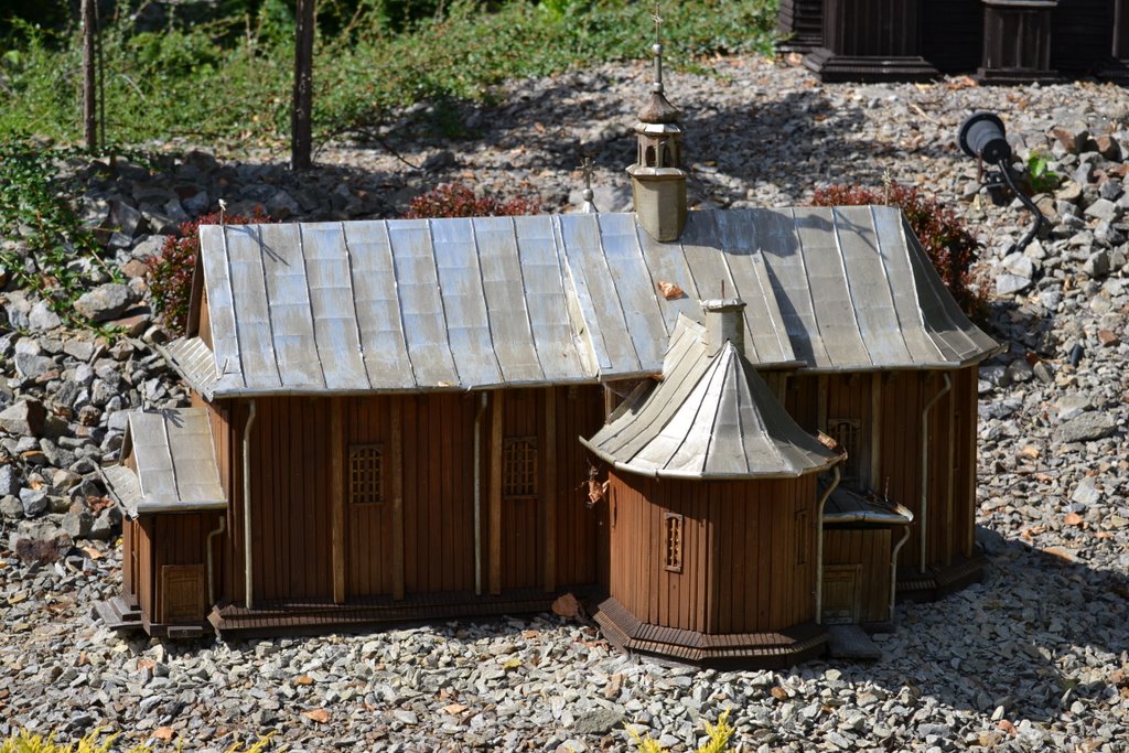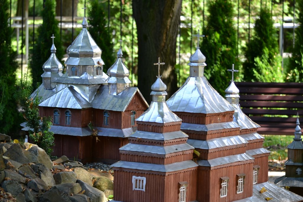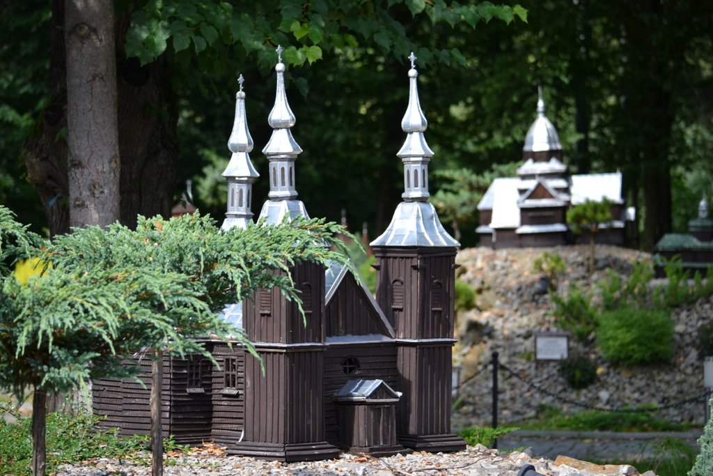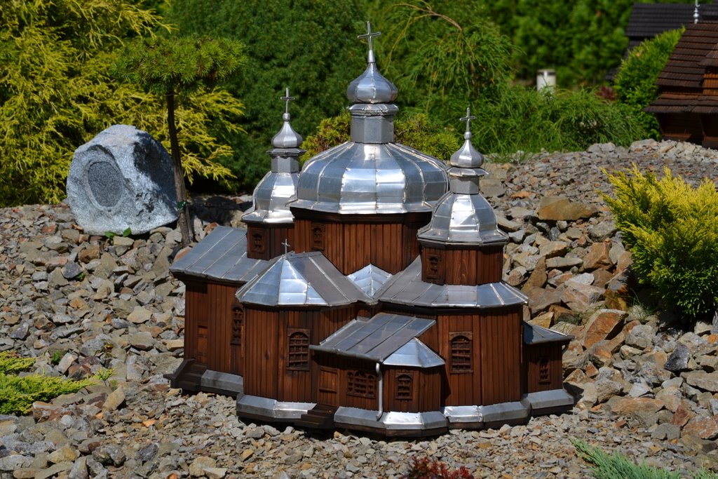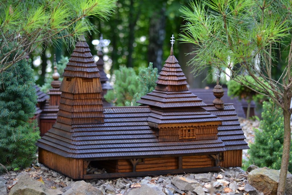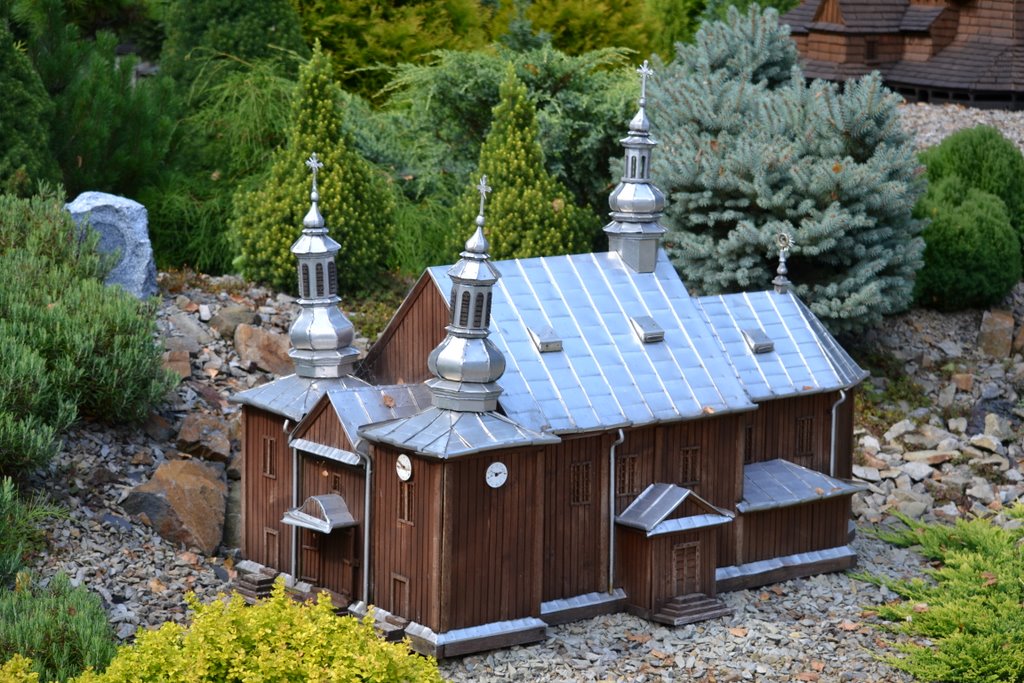 Na obszarze ok. 0,8 ha, na 10 wzgórzach, zostało ustawionych 140 makiet w skali 1 : 25 najstarszych drewnianych kościołów rzymsko - katolickich, cerkwi prawosławnych, greckokatolickich, z terenu południowo – wschodniej Polski, Słowacji i Ukrainy.