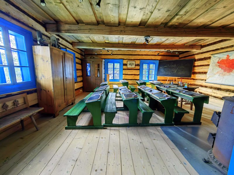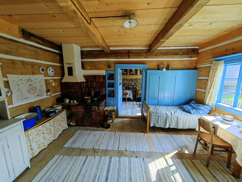 Wchodząc na teren skansenu tak naprawdę nie wiedziałem czego mogę się spodziewać, bo cały teren jest dosyć rozległy a ilość drzew skrzętnie skrywa kolejne zabudowania. To oczywiście duży plus, bo spacerując zwiedzam oraz jednocześnie mam całkiem fajny spacer pośród zieleni. Do skansenu wybrałem się na początku września i w środku tygodnia, a to wręcz doskonała pora na spacer prawie w samotności. Jesień i wiosna to najlepsze pory roku na zwiedzanie ogólnie, nie tylko skansenów ale i zamków czy muzeów na otwartej przestrzeni. W Zubrzycy Górnej trafiłem wręcz idealnie, a to pozwoliło mi na spokojny kilkugodzinny spacer i zaglądanie do wielu, jakże różnych domów czy zagród. W wielu chałupach zadbano także o wystój i jak najwierniejsze pokazanie życia w czasach z jakich pochodzą poszczególne obiekty.