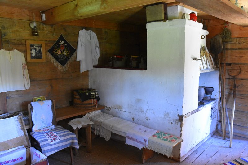 Chata ze wsi Klejniki – pochodzi z roku 1893, rok rekonstrukcji – 1988. Kryta gontem, w części mieszkalnej w pierwotnym kształcie zachowane są trzy pomieszczenia: „chata”, sień i komora. W centralnej izbie odtworzono piec oparty na drewnianym zrębie. Na głównej ścianie zachowała się w formie napisu w języku staro – cerkiewno – słowiańskim data wyświęcenia: 17 lipca 1895 roku.