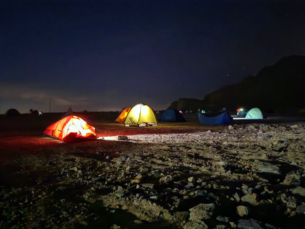 Przechodzę na spory plac będący parkingiem przy przejściu granicznym z Omanem. Sporo namiotów jest już rozbitych, co w tych warunkach także jest wyzwaniem. Tutaj nie ma ziemi gdzie można by wbijać śledzie i naciągnąć linki namiotu. Skała ma swoje prawa a jedynym sposobem jest wykorzystanie kamieni jako obciążenie. Samonośne konstrukcje namiotów tutaj się sprawdzają. Mój namiot poza tym że waży zaledwie 1 kilogram, także pozwala na uniknięcie wyginania kolejnych śledzi przy próbach ich wbijania.