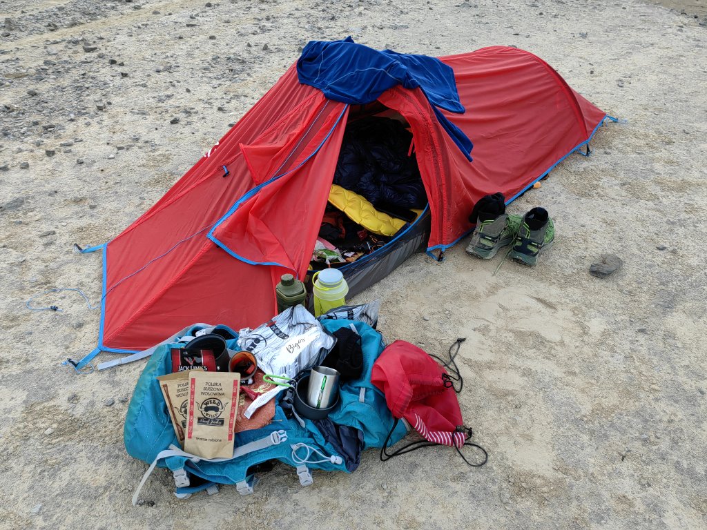 O poranku namiot jak i wszystko w namiocie było zupełnie mokre.
