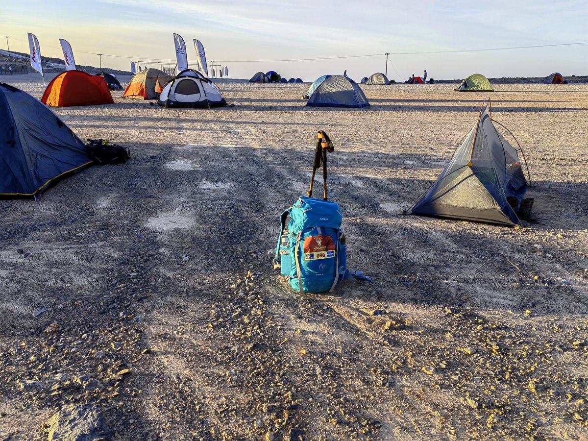 Nie, nie wystarczyła karimata i jakieś buty. Klimat jest trudny bo w dzień upał przekraczający 30 stopni i brak jakiegokolwiek cienia a w nocy chłodno, gdzie śpiwór puchowy był nieodzowny. Poranek także był bardzo rześki a wraz z pojawieniem się słońca temperatura wzrastała gwałtownie. Niby zaledwie trzy dni a jednak plecak 45 l wypakowany był po brzegi. No i woda... minimum wymagane przez organizatora to 5 litrów z początku wydawało mi się przesadą ale po dotarciu do pierwszego punktu kontrolnego przekonałem się dlaczego.