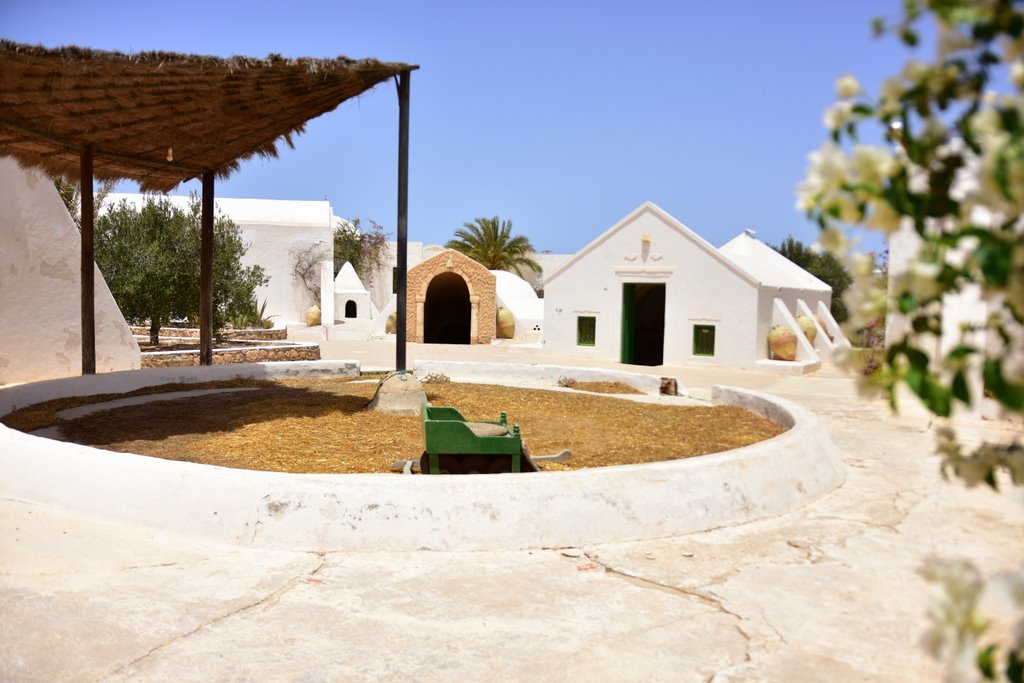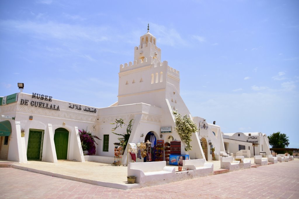 Z najwyższego punktu wyspy Djerba (wzgórze Tassita 52 m n.p.m.) wznosi się majestatyczny budynek skansenu w Guellala niczym średniowieczna cytadela, strażnik legendarnej wsi Dżerby z jej bogatymi wspomnieniami sięgającymi aż do na wschód i z widokiem na rozległe śródlądowe morze, które chłodzi je zachodnią morską bryzą. U jego stóp znajdują się domy z białymi kopułami zabytkowej wioski Guellala, otoczone starymi piecami do wypalania ceramiki i oddzielone od morza wiekową oazą.