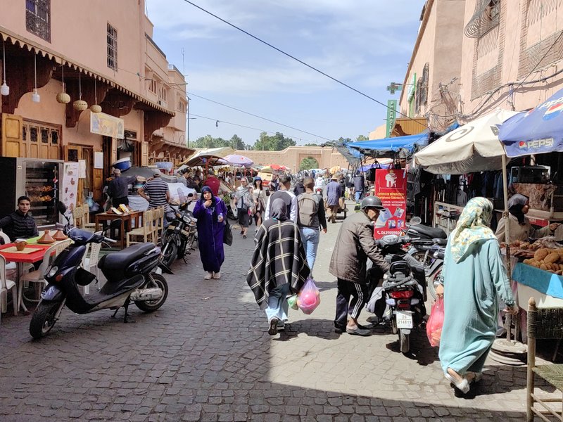 W Marrakeszu poza sklepami lokalnymi, funkcjonują także duże sieci międzynarodowe. Ja na trasie z centrum do hotelu korzystałem z Carrefoura. Wybór całkiem duży a jakość świeżego pieczywa i serów dużo lepsza niż tej samej sieci w Polsce. Mimo że to kraj muzułmański, jest także duże wewnętrzne stoisko z alkoholami. Ceny zupełnie normalne. Jedyny problem to oczywiście czas ramadanu. Wówczas to stoisko przestaje istnieć.