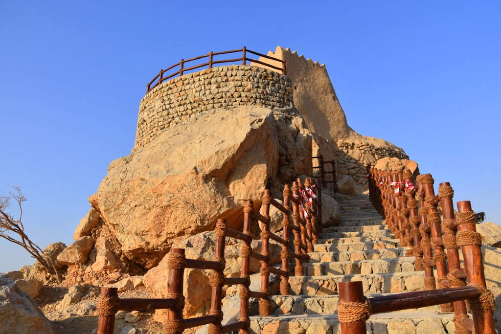 Fort Dhayah, przypominająca twierdzę budowla wpisana na Światową Wstępną Listę Dziedzictwa UNESCO, stoi dumnie pośród jałowych gór i żyznych wadi północnego emiratu, Ras al-Chajmy. Fort stanowi centrum tej bujnej oazy – rozciągają się z niego widoki na góry, palmy i zielone połacie ziem aż do sąsiedniego Omanu i do samego morza.