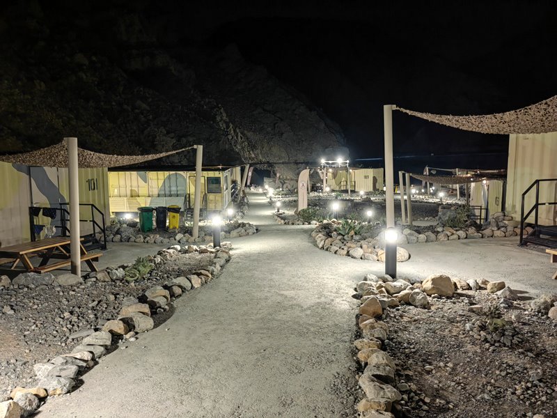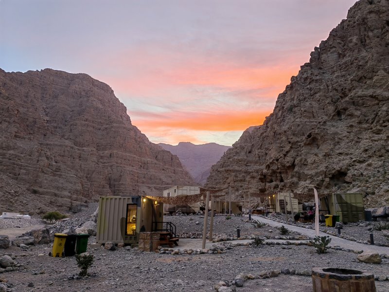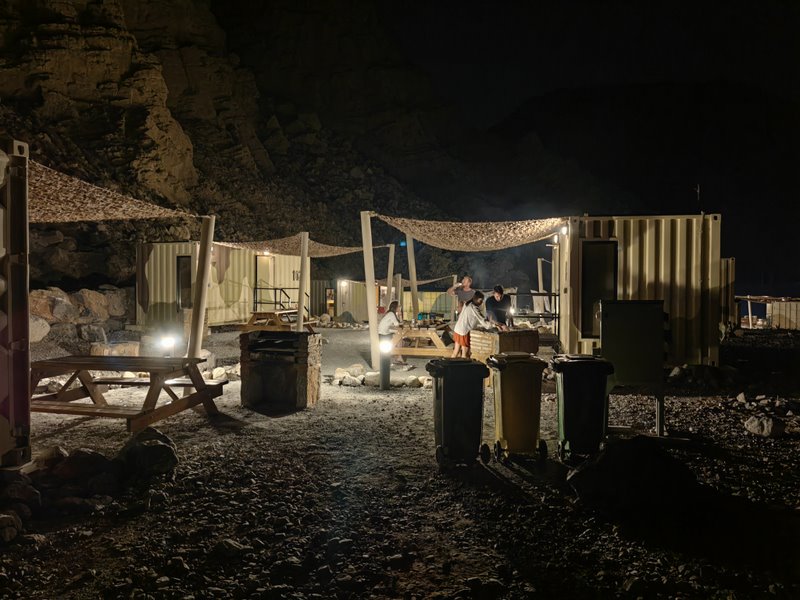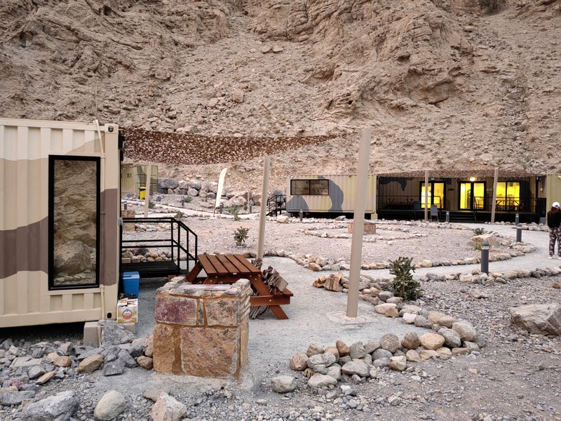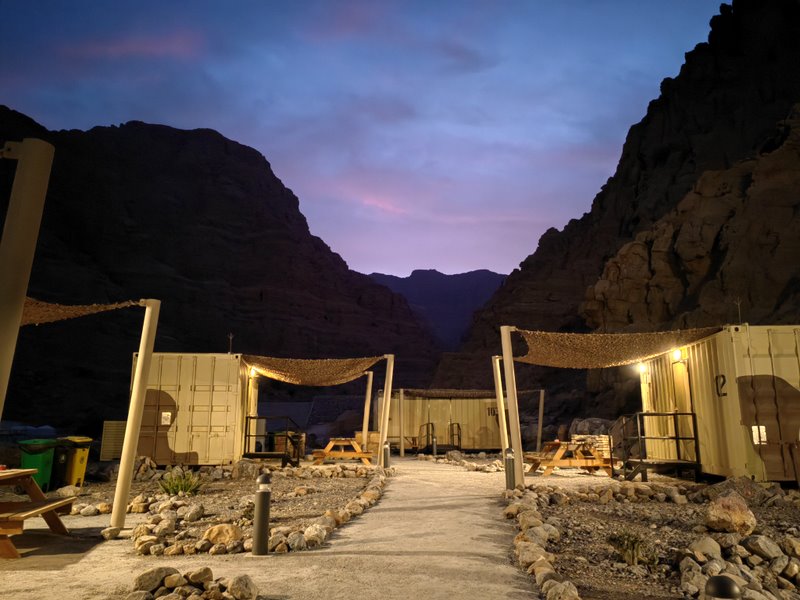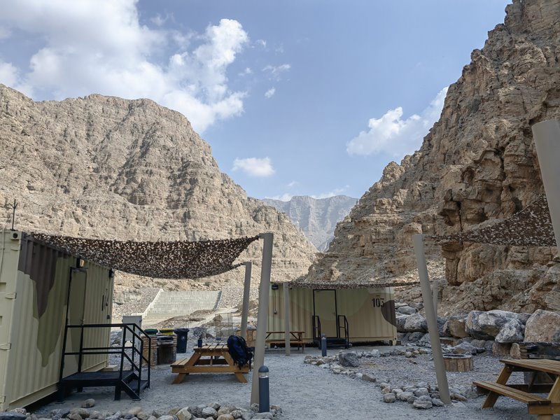 Obóz Bear Grylls Explorer Camp w górach Jebel Jais w Zjednoczonych Emiratach Arabskich to obóz ekstremalnych technik przetrwania w naturalnym centrum przygód na Bliskim Wschodzie. Proste kontenery samochodowe przerobione na mieszkalne. Całość wkomponowana w wąwozie, pomiędzy skalnymi urwiskami.