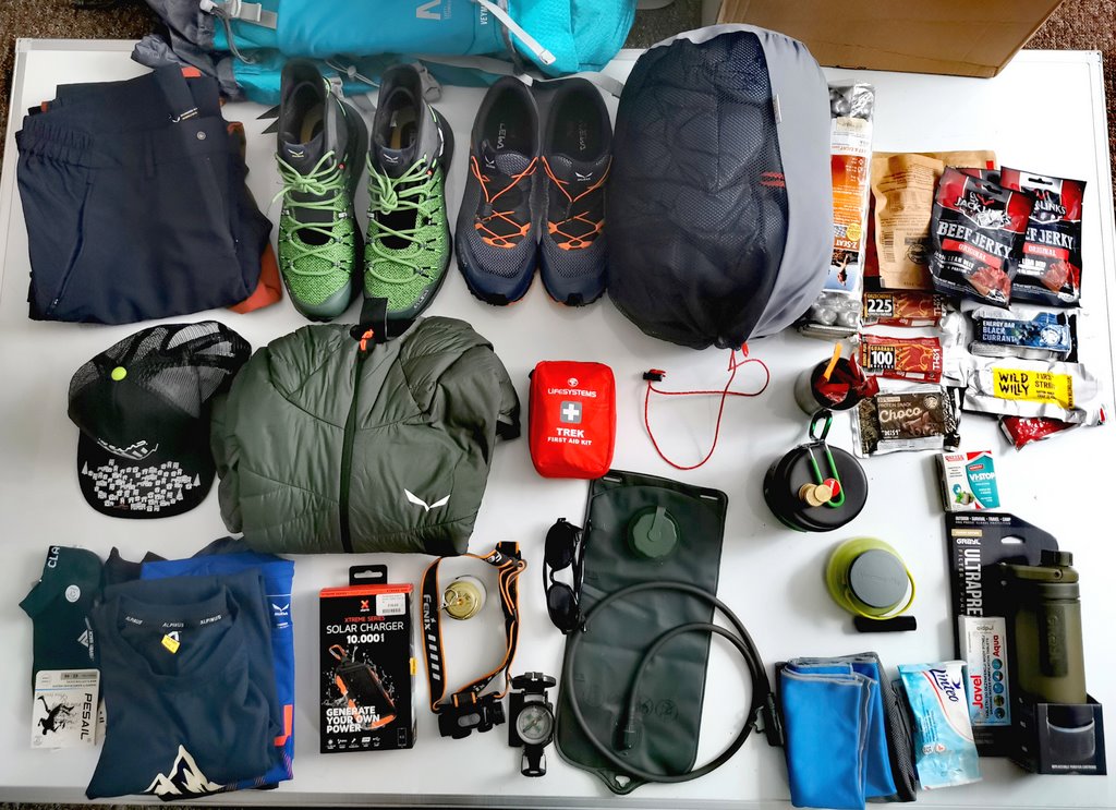 Co znalazło się jeszcze w plecaku ? Na pewno czołówka, kompas (nie wszędzie jest zasięg telefonu) apteczka choćby z podstawowym wyposażeniem, Koszulki na zmianę, coś cieplejszego na chłodne wieczory i noce. Tutaj postawiłem na kamizelkę puchową Salewa. Ciepła a do tego ultralekka i kompaktowa. Po skompresowaniu mieści się we własnej kieszeni, zajmując niewiele miejsca w plecaku.